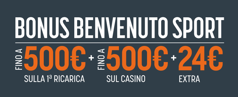 Il bonus GOLD verrà accreditato solo ai nuovi clienti che abbiano giocato l’intero importo del loro primo deposito in multipla con almeno 3 avvenimenti ciascuno a quota pari o superiore a 1.50, con esclusione delle scommesse sistemistiche, entro 30 gg dalla data del primo deposito.